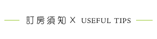 為維護住宿環境,請每位遊客相互尊重住宿空間上的安寧,室內請勿吸煙、請勿攜帶寵物。 |